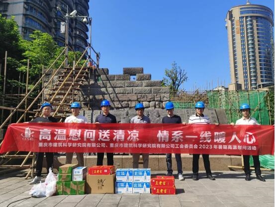 時(shí)值八月,氣溫久高不下,為進(jìn)一步落實(shí)高溫防暑工作,為一線員工身心健康提供保障,8月9日,重慶設(shè)計(jì)集團(tuán)所屬子企業(yè)重慶市建筑科學(xué)研究院有限公司黨委委員、副總經(jīng)理、總工程師張京街同志赴檢測七公司承擔(dān)的通遠(yuǎn)門城墻搶險(xiǎn)加固工程開展“夏日送清涼”慰問活動(dòng),為烈日中堅(jiān)守崗位的職工送上防暑降溫物品,并致以誠摯的關(guān)懷與問候。