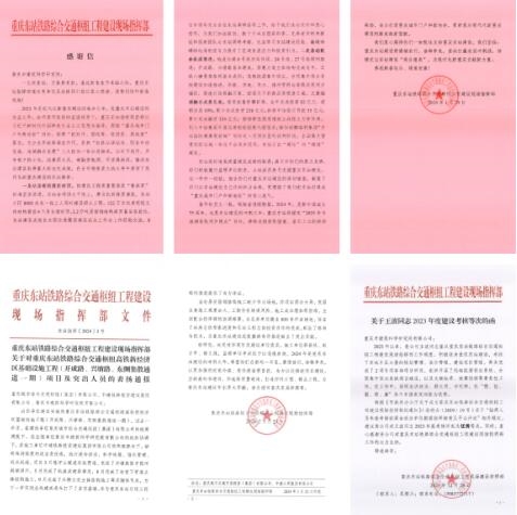 2023年12月至2024年1月,市建科院公司收到來自重慶東站鐵路綜合交通樞紐工程現場建設指揮部的3封感謝表揚信,對市建科院公司積極履行監理單位職責、主動派員參與支援重慶東站建設、高效推進完成各關鍵性節點表示感謝,對我司李宗民、王波同志給予表揚。
