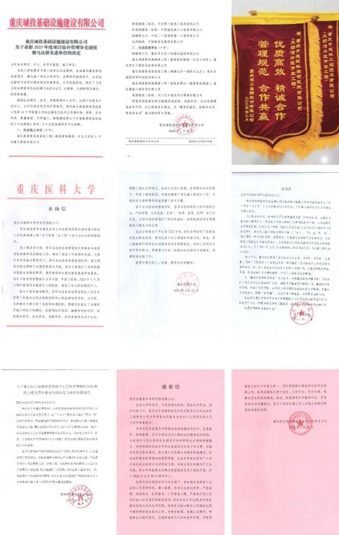 今年以來,公司聚焦公共設施完善和區域互聯互通水平提升,助力人居環境改善和生產生活品質提升,承擔的渝長高速復線連接道工程(海騰立交-南橋頭立交)、大田灣片區市政工程、重慶醫科大學政策性租賃住房和縉云校區人才住房新建工程、重慶市中醫院中醫藥傳承創新中心、重慶醫療器械質量檢驗中心醫療器械檢驗檢測能力建設項目、李雪芮全民健身運動中心工程等多個項目相繼獲業主方感謝信。